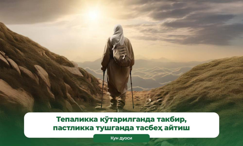 Жобирдан розияллоҳу анҳудан ривоят қилинади: Бу зот: «Агар тепаликка кўтарилсак, такбир айтардик. Агар пастликка тушсак, тасбеҳ айтардик», деб айтдилар.