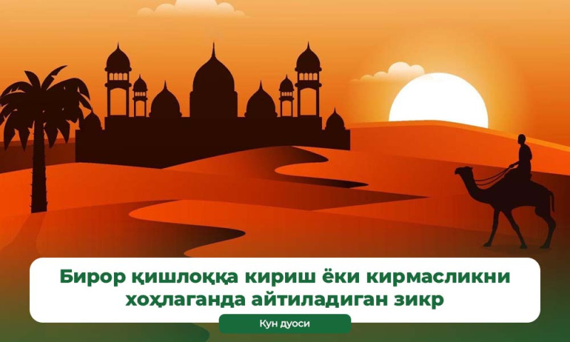 «Расулуллоҳ соллаллоҳу алайҳи васаллам агар ҳаж ёки умрадан (ровий: «ғазот, деб айтганларини биламан, холос», дедилар) қайтадиган бўлиб, тепалик ёки саҳро ерига кўтариладиган бўлсалар, уч марта такбир айтиб, сўнгра: