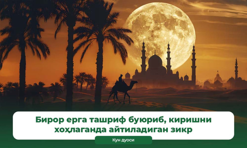«Аллоҳумма! фотирас самавати вал арзи, ъалимал ғайби ваш-шаҳадати, Робба кулли шайъин ва малийкаҳу. Ашҳаду ан лаа илааҳа иллаа анта. Аъузу бика мин шарри нафсии ва мин шарриш-шайтони ва ширкиҳи», деб айт. Уларни тонг оттирганингда ҳам, кунни кеч қилганингда ҳам ва ётар жойингни олганингда ҳам айт», дедилар».
