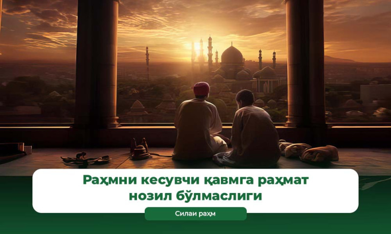 «Расулуллоҳ соллаллоҳу алайҳи васаллам: «Ичида қариндошлик алоқаларини кесувчи бор қавм устидан раҳмат нозил бўлмайди», дедилар. Ул зотнинг ҳаммажлисларидан бир киши: «Эй Аллоҳнинг Расули, менинг холам бор. Мен у билан гаплашмас эдим», деди. Шунда Расулуллоҳ соллаллоҳу алайҳи васаллам: «Тур! У билан гаплаш», дедилар».