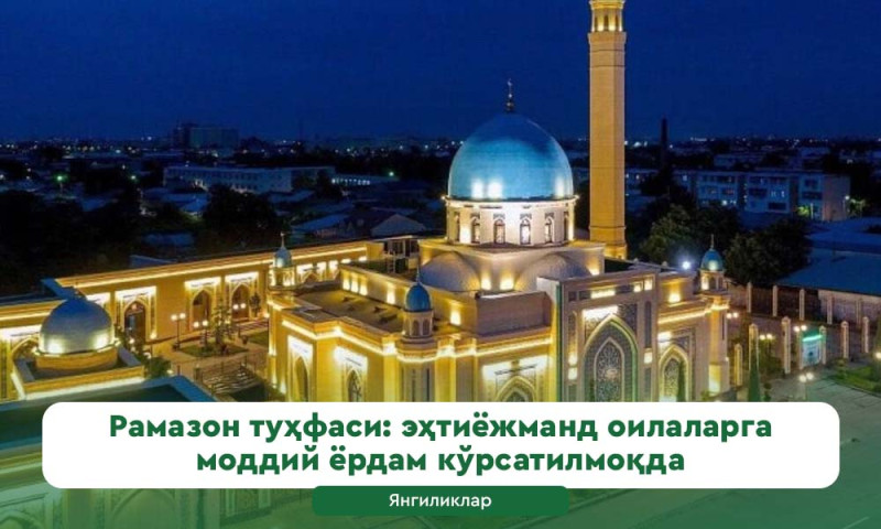 Президентнинг «Муборак Рамазон ойида эҳтиёжманд аҳолини давлат томонидан ижтимоий қўллаб-қувватлаш чоралари тўғрисида»ги қарорига мувофиқ, эҳтиёжманд аҳолини қўллаб-қувватлаш мақсадида моддий ёрдам тўловлари босқичма-босқич амалга оширилмоқда.