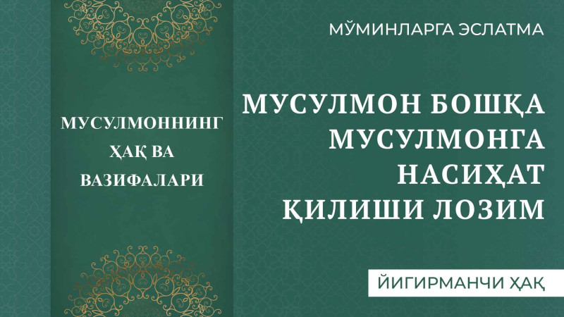 Мусулмон бошқа мусулмонга насиҳат қилиши лозим. Расулуллоҳ соллаллоҳу алайҳи васаллам Дин насиҳатдирrdquo, дедилар. Саҳобалар Ким учун эй Аллоҳнинг давоми...