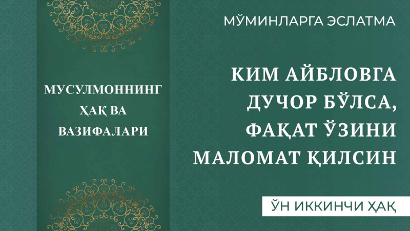 Исломда мусулмонларнинг камчиликларини яшириш улуғ фазилатли амал ҳисобланади. Пайғамбаримиз соллаллоҳу алайҳи васаллам Эй тили билан иймон келтириб, иймон давоми...
