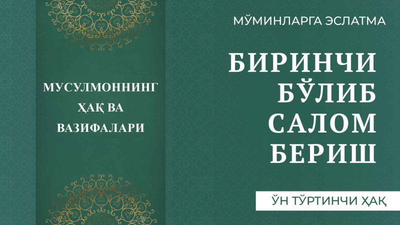 Биринчи бўлиб салом бериш устунлигига эришиш учун ҳар бир мусулмонга биринчи салом бериб, қўл бериб кўришиш.