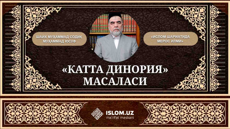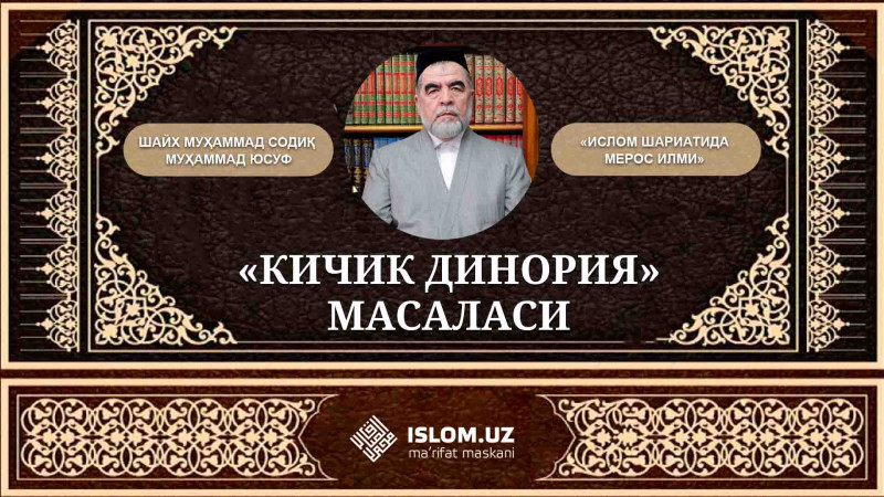 Бу ердаги икки масала фароиз уламолари орасида машҳур бўлган. Биринчиси .Кичик динория,, иккинчиси .Катта динория, дейилади. .Кичик динория,даги меросхўрлар бари давоми...