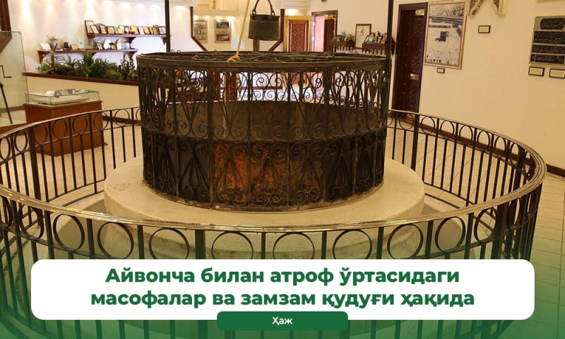 Ҳажарул асвад билан айвонча орасидаги масофа ndash 14 метр 5 см. Рукну шомий билан айвонча оралиғи ndash 14 метр.