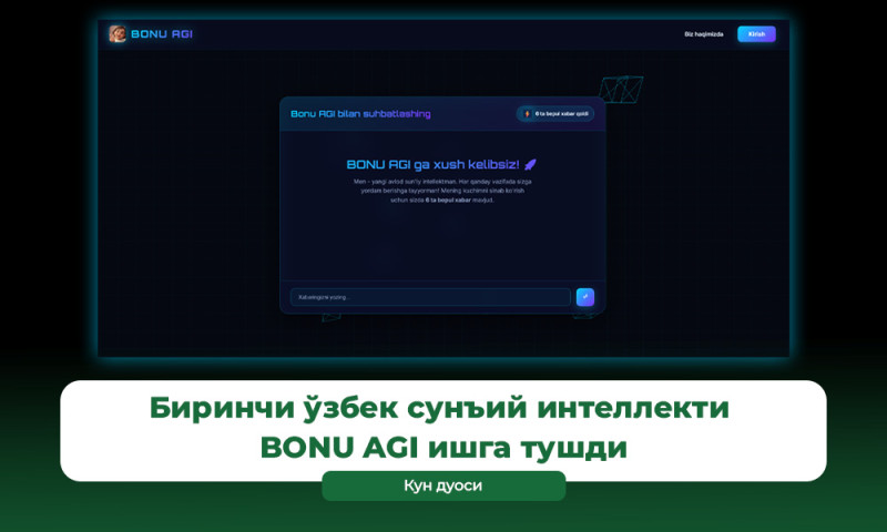 Бугунги кунда сунъий интеллект тизими кўп, бироқ уларнинг аксарияти умумий мантиққа таянади Ўзбекистонда миллий қадриятларга асосланган, савол ва вазифаларни давоми...