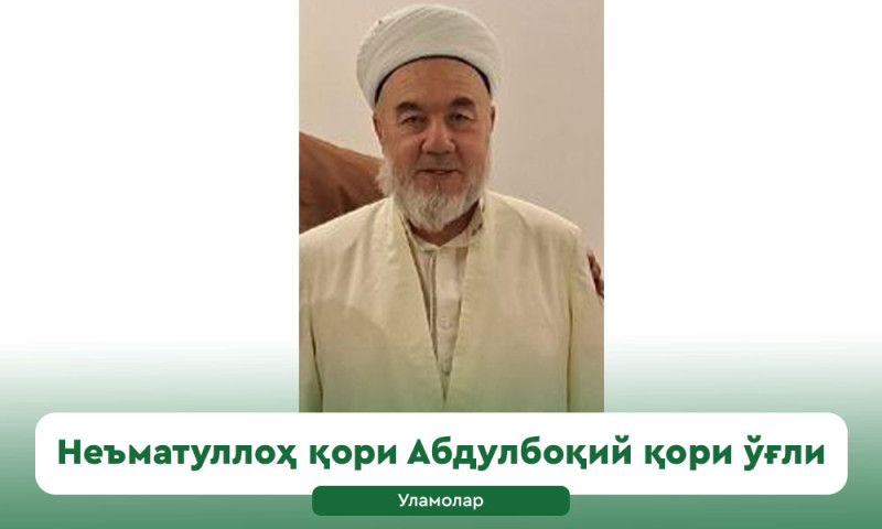 Андижондлик Қуръон устозларидан бири Неъматуллоҳ қори Абдулбоқий қори ўғли 1959 йил Хитой Республикасининг Ғулжа шаҳрида Қуръон хонадонида туғилган, У кишининг давоми...