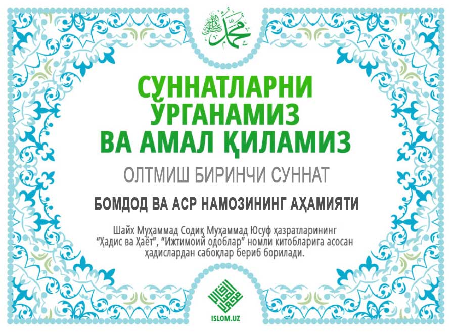 Пайғамбаримизга мукаммал ва батамом салавоту дурудлар бўлсин.
