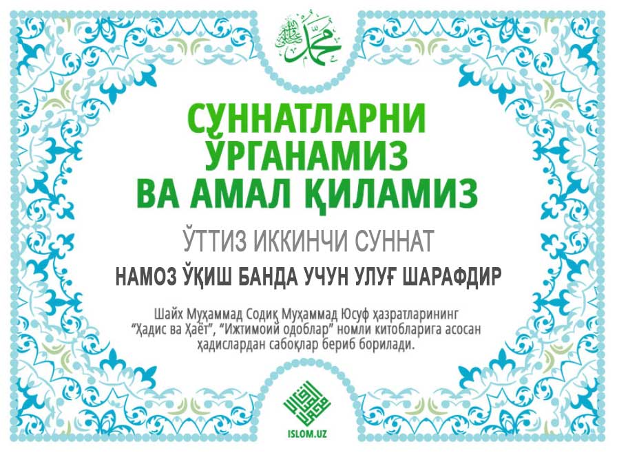 Пайғамбаримизга мукаммал ва батамом салавоту дурудлар бўлсин.