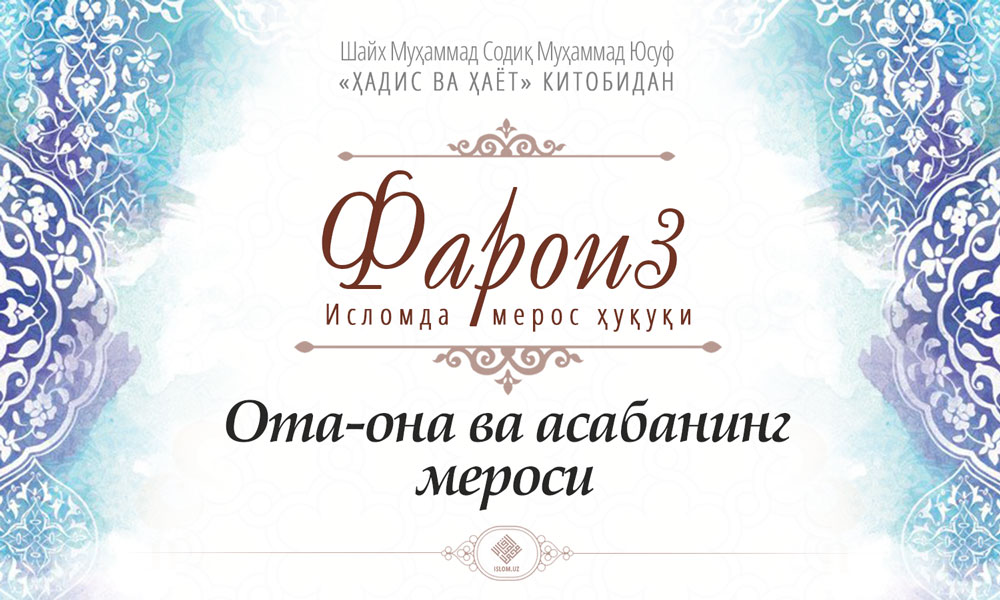 Асабалар уч хил бўлади1. Ўзи асаба.Маййитга аёл орқали насаби қўшилмаган шахс.2. Бошқанинг сабабидан асаба.3. Бошқа билан бирга асаба.Ўзи асаба бўлганлар тўрт давоми...