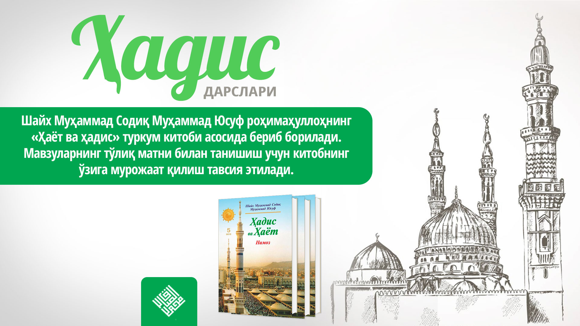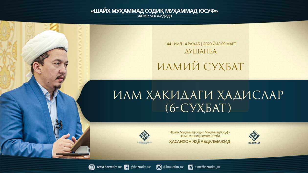 Шайх Муҳаммад Содиқ Муҳаммад Юсуф роҳимаҳуллоҳнинг «Ҳаёт ва ҳадис» туркум китоби асосида бериб борилади. Мавзуларнинг тўлиқ матни билан танишиш учун китобнинг ўзига мурожаат қилиш тавсия этилади.