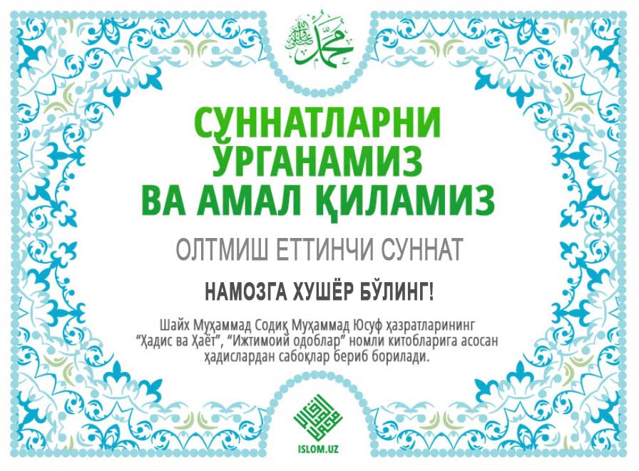 Пайғамбаримизга мукаммал ва батамом салавоту дурудлар бўлсин.