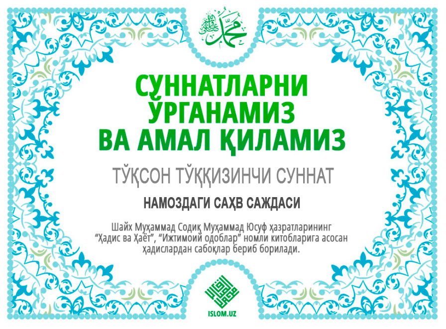 «Бирортангиз намозида унутиб, бир ракат ўқидими, икки ракат ўқидими, била олмай қолса, бир ракат ўқидим, деб олсин. Агар икки ракат ўқидими, уч ракат ўқидими, била олмай қолса, икки ракат ўқидим, деб олсин. Агар уч ракат ўқидими, тўрт ракат ўқидими, била олмай қолса, уч ракат ўқидим, деб олсин ва салом беришидан олдин иккита саҳв саждаси қилсин», дедилар».