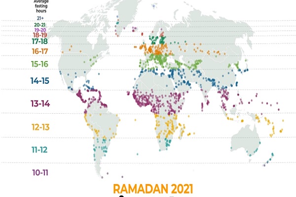 Шимолий ярим шарда яшовчи мусулмонлар учун рўза вақти бу йил бироз қисқароқ бўлади ва экваторнинг жанубида яшовчи мусулмонлар учун эса аксинча.