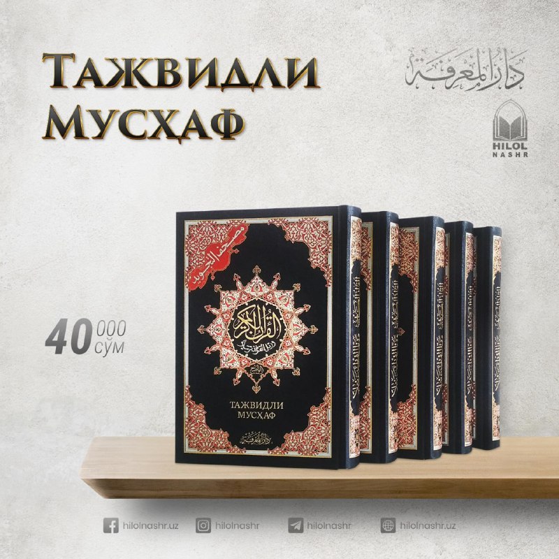 Яқинлашиб келаётган Ийди Қурбон байрамида янги Мусҳафи шариф Сиз ва яқинларингиз учун муносиб совға бўлади деган умиддамиз!