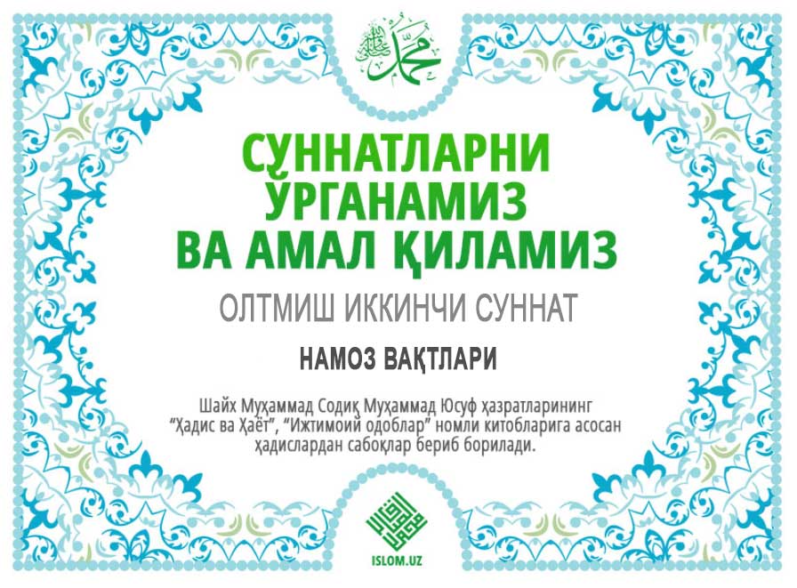 Пайғамбаримизга мукаммал ва батамом салавоту дурудлар бўлсин.