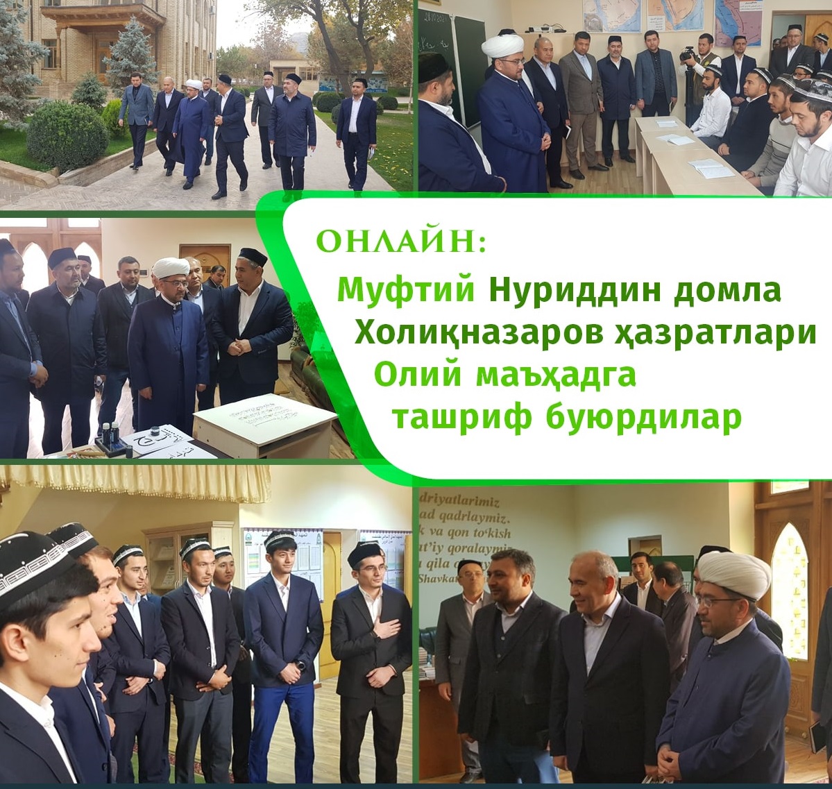 Бугун, 28 октябрь куни Ўзбекистон мусулмонлари идораси раиси, муфтий Нуриддин домла Холиқназаров ҳазратлари диний таълим муассасаларига бўлган илк ташрифларини Имом Бухорий номидаги Тошкент ислом институтидан бошладилар.