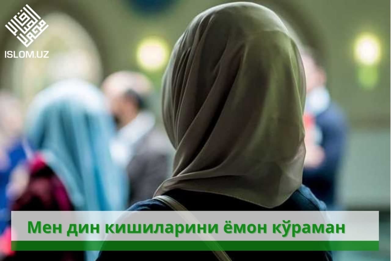 Бошини енгил рўмол билан ёпиб олибди. Саволларини берди ва мен ҳам жавобларни бера бошладим. Сўнг: «Нега яқинроғингиздаги масжидга бормайсиз?» дедим. Лекин саволимдан пушаймон бўлдим.