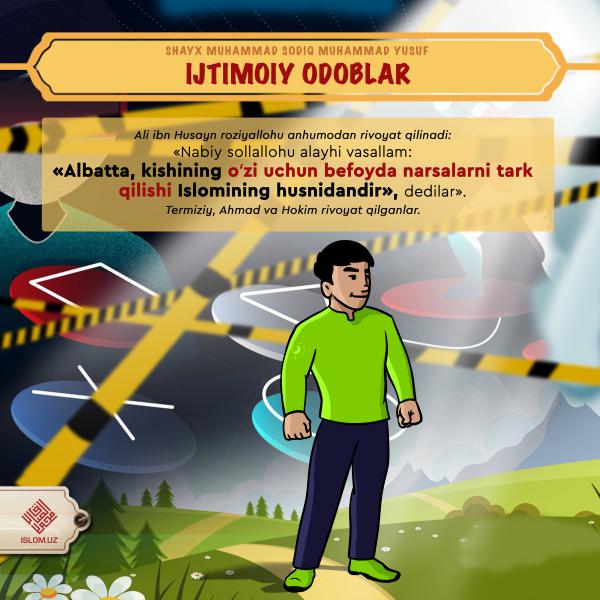 «Албатта, кишининг ўзи учун бефойда нарсаларни тарк қилиши Исломининг ҳуснидандир», дедилар».