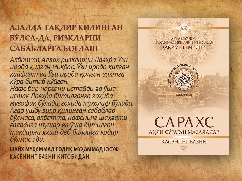 Келинг азизлар, «Саҳиҳул Бухорий», «Сунани Термизий» каби ўта ишончли ҳадис тўпламларини ўқиб, ўрганиб, уларга амал қилиб, зурриётларимизни ҳам улуғларга ўхшаган илмли, маърифатли ҳамда ихлос ва тақволи, ўзидан яхшилик из қолдирадиган инсон этиб тарбиялайлик.