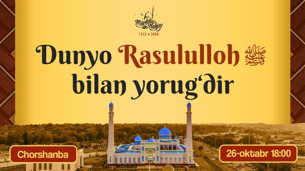 Аллоҳ Таоло зикрини баланд, қадрини олий қилган, йўл кўрсатувчи нурли чироқ бўлган зот ‒ Муҳаммад соллаллоҳу алайҳи васалламнинг ҳаётларини ўрганишга бағишлаб, «Шайх Муҳаммад Содиқ Муҳаммад Юсуф» жомеъ масжидида «Дунё Расулуллоҳ соллаллоҳу алайҳи васаллам билан ёруғдир» шиори остида олиб борилган маърифий суҳбатлар якунига етиб бормоқда.