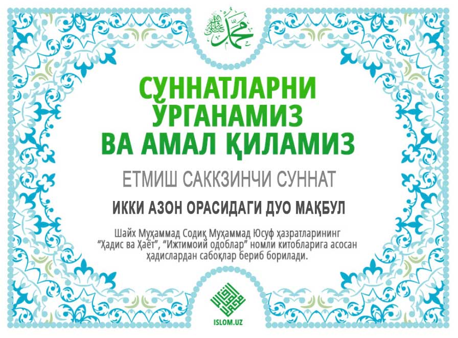 Пайғамбаримизга мукаммал ва батамом салавоту дурудлар бўлсин.
