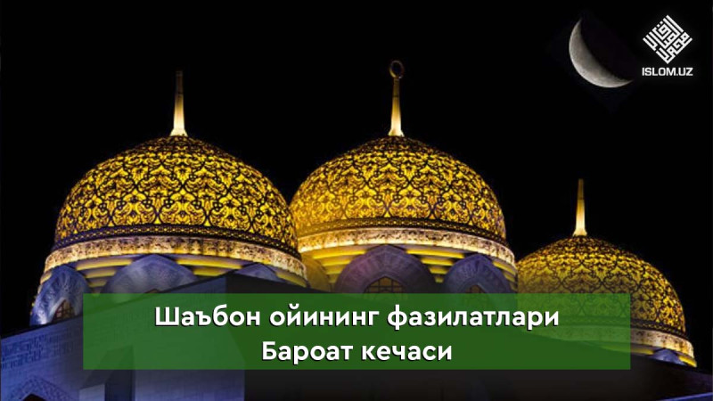 Шаъбон ойининг ўн тўртинчидан ўн бешинчига ўтар кечаси “Бароат” кечаси деб номланади. Ушбу тунда кўплаб осий бандаларнинг тавбалари қабул бўлиб, гуноҳлари кечирилиши, ризқлар тақсимланиши, беморлар шифо топиши ва ундан бошқа фазилатларга эга экани борасида турли ривоятлар бор. Ушбу ривоятлар якка ҳолда заиф ҳадислар ҳисоблансада ҳамма санадларини жамлаб, умумий ҳолда хулоса қилинса, шариатимизга кўра ушбу кеча фазилатли ва баракотли кеча ҳисобланиши маълум бўлади. Шунинг учун ҳам Абул Ало Муҳаммад ибн Абдурроҳман Муборакфурий “Шаъбон ойи 15-тунининг фазилат борасида бир қанча ҳадислар бор бўлиб, уларнинг мажмуаси унинг шариатда ишончли асоси бор эканига далолат қилади”, деган (Туҳфатул аҳвазий. 3-жуз, 365-бет).