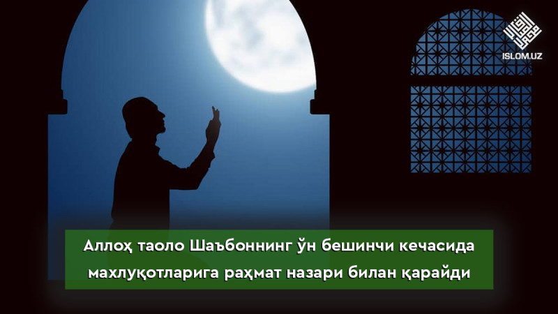 «Шаъбон ойининг ўн бешинчи кечаси Аллоҳ таоло Ўз махлуқотларига раҳмат назари билан қараб, мушрик ва қалбида гинаси бор кишидан бошқаларнинг барчасини мағфират қилади»