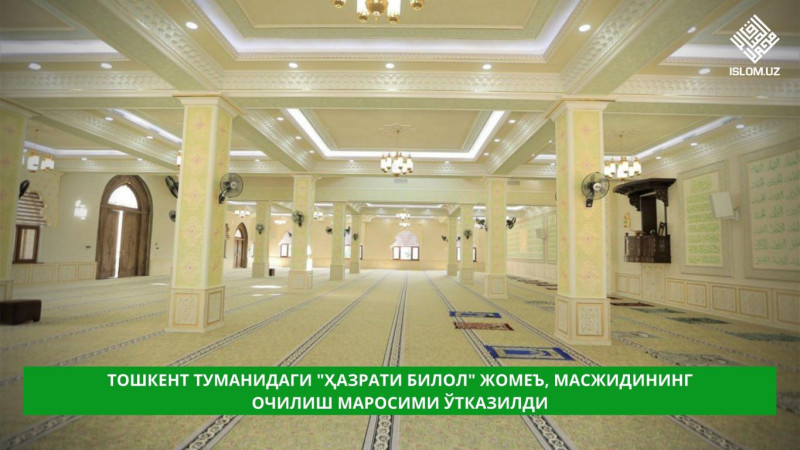 Бугун Тошкент вилояти Тошкент туманидаги "Ҳазрати Билол" жомеъ масжиди янги биносининг расмий очилиш маросими бўлиб ўтди.