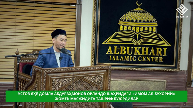 Куни кеча Флорида штатининг Орландо шаҳридаги «Имом ал-Бухорий» жомеъ масжидида ватандошларимизга маърифий суҳбат қилиб бердилар. Суҳбат сўнгида Пайғамбаримиз соллаллоҳу алайҳи васалламнинг муборак соқолларидан бир толасини зиёрат қилдилар. Хизмат сафари давом этмоқда.
