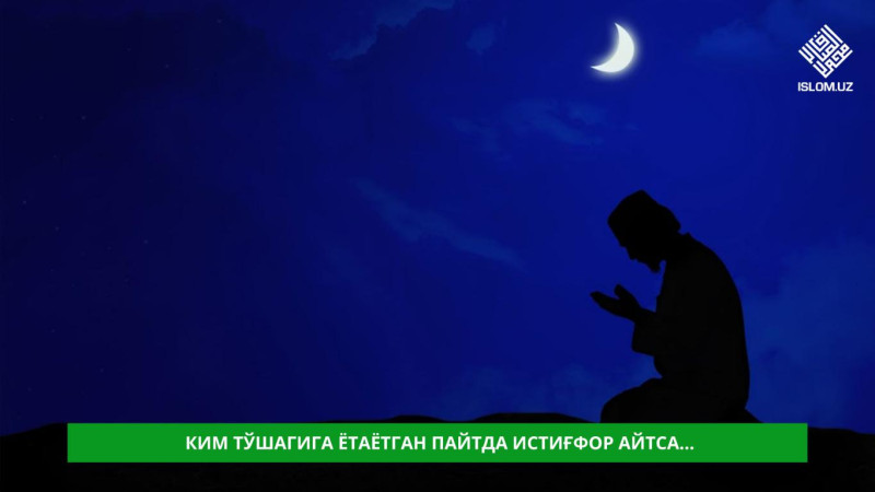 «Астағфируллоҳаллазий лаа илаҳа илла ҳувал ҳаййул қоййум ва атуби илайҳ», деб уч марта айтса, гуноҳлари денгиз кўпигича ёки юлдузлар ададича ёки бир-бирига жипс қумлар сонича ёки дунё кунларининг ададича бўлса ҳам, Аллоҳ таоло кечиради», дедилар.