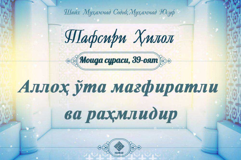 «Ким зулмидан кейин тавба этса ва ислоҳ қилса, Аллоҳ албатта тавбасини қабул қиладир. Албатта, Аллоҳ ўта мағфиратлидир, ўта раҳмлидир» (Моида сураси, 39-оят).