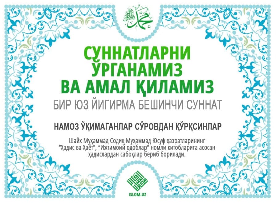 «Ким витрни ўқимай, ухлаб қолса ёки унутган бўлса, эслаганида ва уйғонганида ўқиб олсин», дедилар».