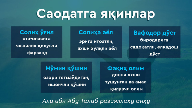 1. Солиҳ ўғил. (ота-онасига яхшилик қилувчи фарзанд).