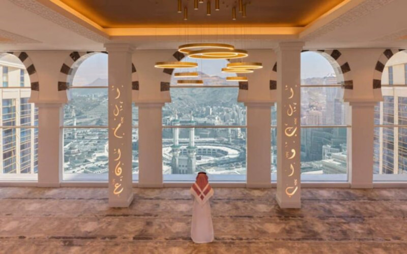 Ўзининг ажойиб меъморчилиги билан ажралиб турадиган намозхона машҳур меҳмонхонанинг икки минорасини боғлайдиган осма кўприкда жойлашган бўлиб, Макканинг гўзаллигини яна ҳам кўркам ҳолатда тақдим этади. Замонавий ускуналар ва хизматлар билан жиҳозланган намоз залидан турли миллат мусулмонлари фойдаланиши мумкин.