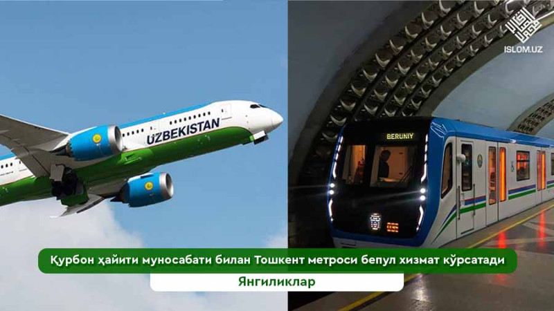 Бундан ташқари, Қурбон Ҳайити байрами кунида Тошкент метрополитени соат 03:00 дан 10:00 га қадар йўловчиларга бепул хизмат кўрсатади.