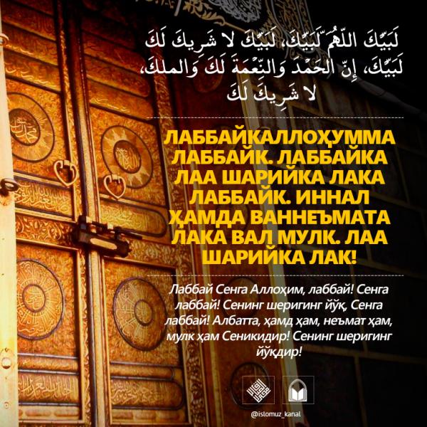 Аллоҳу акбар! Аллоҳу акбар! Лаа илааҳа иллаллоҳу валлоҳу акбар! Аллоҳу акбар ва лиллааҳил ҳамд.