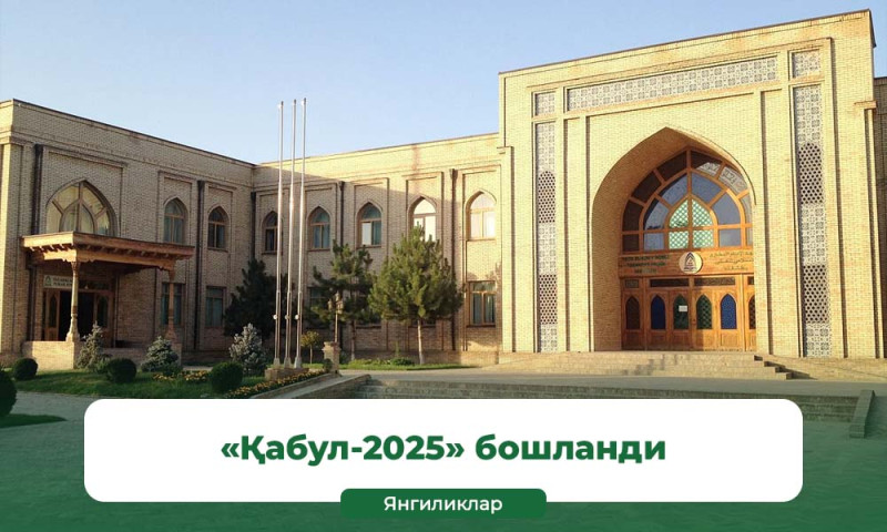 Тошкент ислом институтида 2025-2026 ўқув йили кундузги таълим учун абитуриентлардан ҳужжатларни қабул қилиш оффлайн шаклда 25 июндан бошланди.