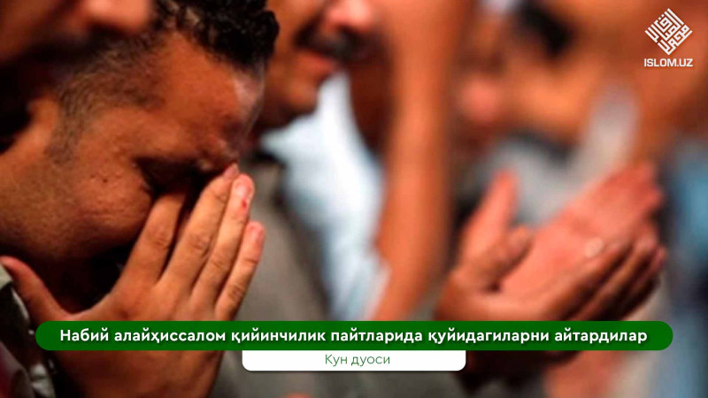 «Аллоҳумма антас соҳибу фиссафари вал халийфату фил аҳли. Аллоҳумма инний аъузу бика мин ваъсоис сафари ва каобатил мунқолаби ва минал ҳаври баъдал кавни ва мин даъватил мазлуми ва мин су‘ил манзари фил аҳли вал мали», деб айтардилар.