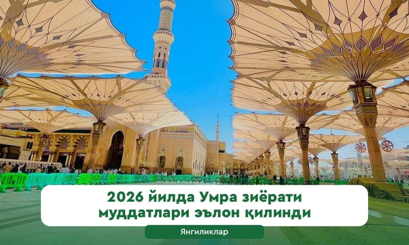 Саудия Арабистони расмийлари 2026 йилда Умра зиёратлари учун белгиланган муддатларни расман тасдиқладилар.