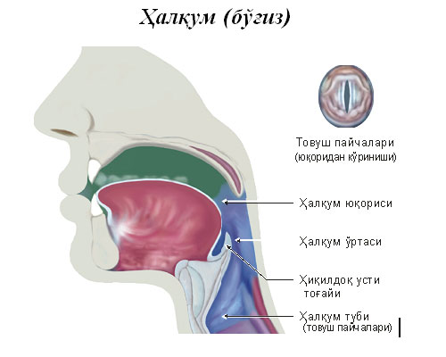 Тил орқаси | Тил ўртаси | Тил олди | Товуш пайчалар |