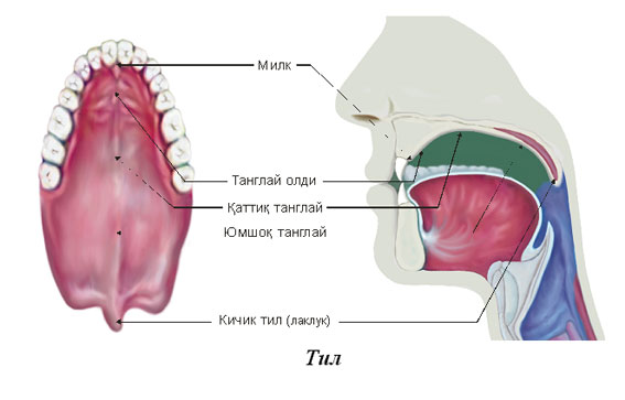 Юмшоқ танглай | Қаттиқ танглай | Танглай олди | Нутқ аъзолари |