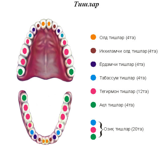 2. Тишларнинг номларини айтиб беринг!