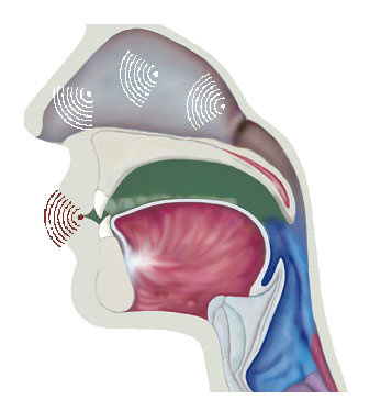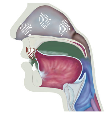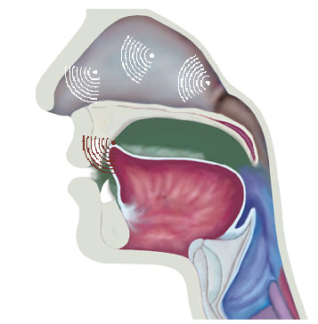 Изоҳ: Мũмнинг талаффузида ҳаво оқимининг бир қисми лабларга урилса, қўпроқ қисми бурун бўшлиғи томон йўл олади (суратга қаранг) ва у ерда пинғиллоқ товуш ҳосил қилади. Бу товуш истилоҳда «ғунна» деб аталади. Ўзбек тилидаги «м» товушида ҳам айни шу ҳолат бор. Бироқ мũм ўзбек тилидаги «м»дан кўра аниқроқ ва кўпроқ димоғ, яъни ғунна билан талаффуз қилинади.