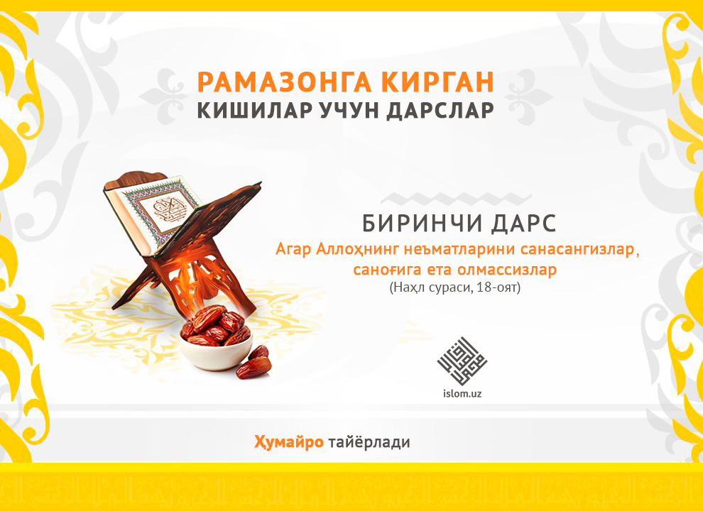 Пайғамбаримизга мукаммал ва батамом салавоту дурудлар бўлсин.