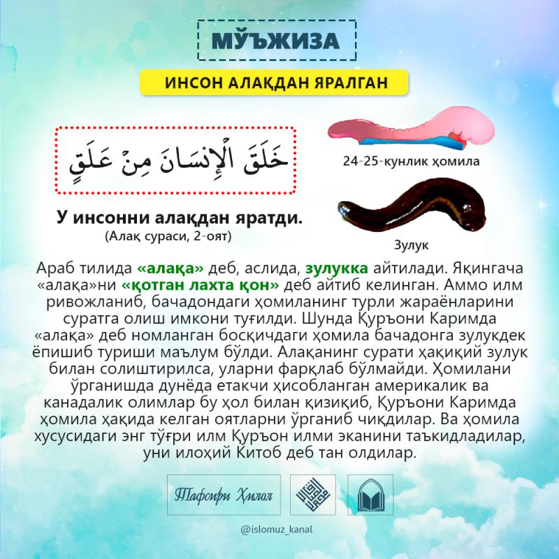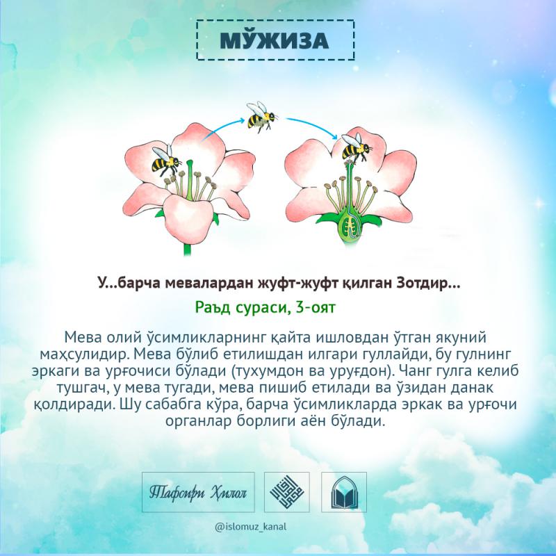 Бисмиллаҳир Роҳманир Роҳийм. Аллоҳ таолога битмас-туганмас ҳамду санолар бўлсин. Пайғамбаримизга мукаммал ва батамом салавоту дурудлар бўлсин.
