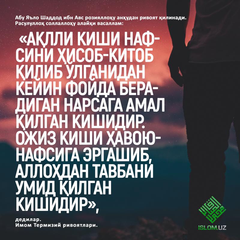Бисмиллаҳир Роҳманир Роҳийм. Аллоҳ таолога битмас-туганмас ҳамду санолар бўлсин. Пайғамбаримизга мукаммал ва батамом салавоту дурудлар бўлсин.