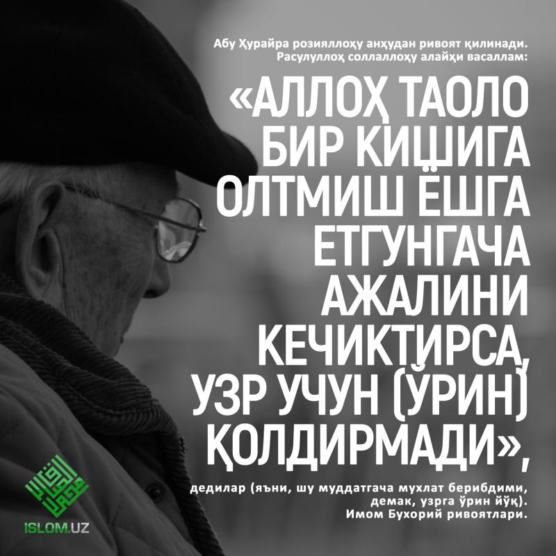 Аллоҳ таоло бир кишига олтмиш ёшга етгунгача ажалини кечиктирса