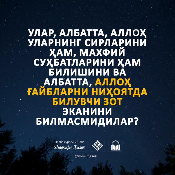 Пайғамбаримизга мукаммал ва батамом салавоту дурудлар бўлсин.